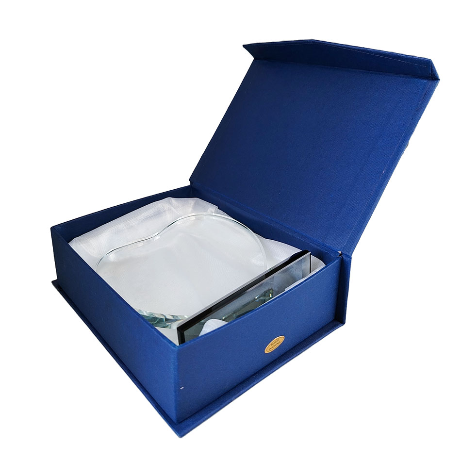 Crystal Shield with Carton Box (12 cm) - Model j-16 is ideal for awards and recognitions, delivered with a carton box for clean presentation and protection.