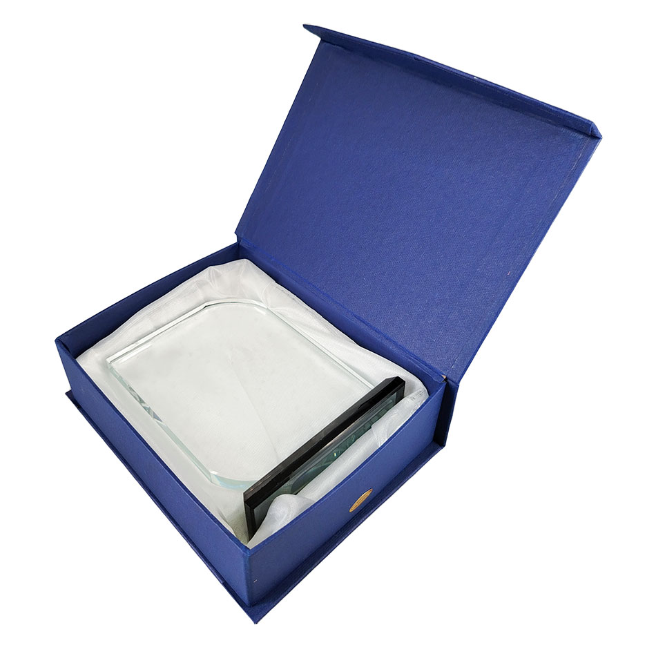 Crystal Shield with Carton Box (12 cm) - Model j-6 is ideal for awards and recognitions, delivered with a carton box for clean presentation and protection.