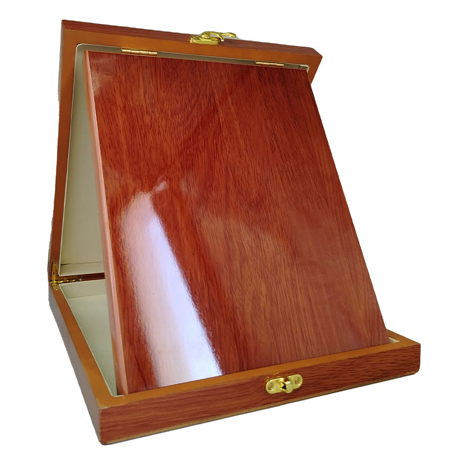 درع خشب صندوق أربيسك - موديل B-222 وسط خيار مثالي للتكريمات الرسمية والفعاليات والمدارس والشركات، بتصميم عملي ومظهر فاخر يليق بالجوائز.